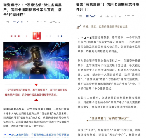 值得警惕的是,该案只是已成产业化、团伙化运营的金融“黑灰产”的冰山一角。犯罪团伙声称可以帮助客户减轻或解决债务问题,在此案中更是“加以利益诱惑”,引导持卡人逾期后反复投诉,甚至伪造、提供虚假材料。不仅浪费了金融资源、侵害了消费者合法利益,更严重扰乱了正常的金融市场经营秩序。